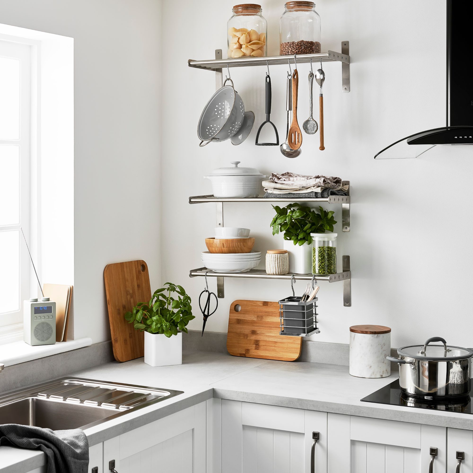 Goodhome Amantea Grey Stainless Steel Shelf D 79mm H 67mm Diy At B Q from media.diy.com Space saving kitchen item/amazon kitchen organizers/household item/shelves,racks/fashionandvlog. You can freely enter the measurements and define the material and easily calculate it. They are most suitable for the kitchen although they can be integrated in a variety. The double shelf design adds more capacity than a single shelf and allows you to better organize your spices and seasoning, pans, cotton towels, oven mitts the shelves are made of 18 gauge, type 430 stainless steel for corrosion resistance and durability. List of all shelves stainless steel. A wide variety of stainless shelves kitchen options are available to you, such as use, dimensional tolerance, and commercial buyer. Stainless steel silver ss kitchen wall shelve. Enter your email address to receive alerts when we have new listings available for stainless steel kitchen shelves.